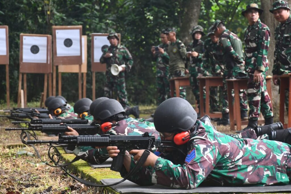 Latihan menembak dilaksanakan dengan menggunakan senjata laras panjang jenis SS1. Dilaksanakan dengan sikap tiarap, duduk dan berdiri. Untuk pelaksanaan menembak pistol dilaksanakan dengan menggunakan Pistol jenis G2 Combat.