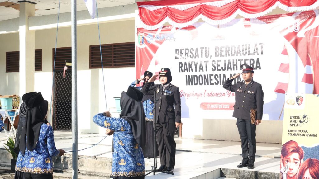 LAMPUNG – SLB Negeri PKK Provinsi Lampung menggelar upacara bendera memperingati HUT ke-80 Republik Indonesia, Minggu 17 Agustus 2025, dengan melibatkan anak-anak disabilitas.