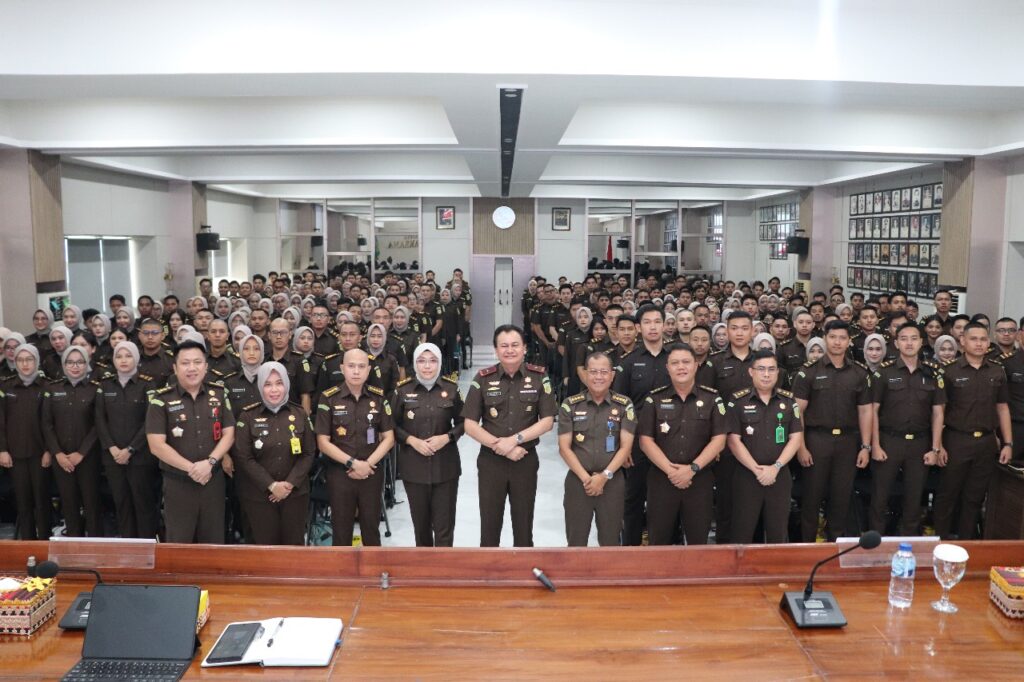 Kejaksaan Tinggi Lampung – Dalam rangka membentuk kompetensi CPNS agar menjadi PNS profesional yang berkarakter juga menanamkan nilai-nilai dasar ASN (Aparatur Sipil Negara) dengan Core Values ASN berorientasi pelayanan, akuntabilitas, kompetensi, harmonis, loyal, adaptif, dan inovatif serta mempersiapkan CPNS menjadi sosok yang mampu melaksanakan tugas dan jabatan secara profesional dan bermoral, Kejati Lampung melalui Subbagian Kepegawaian Bidang Asisten Pembinaan menyelenggarakan Pelatihan Dasar (Latsar) kepada 260 Peserta CPNS Tahun 2024 yang ditugaskan dalam wilayah hukum Kejaksaan Tinggi Lampung pada tanggal 18 Juni 2025.