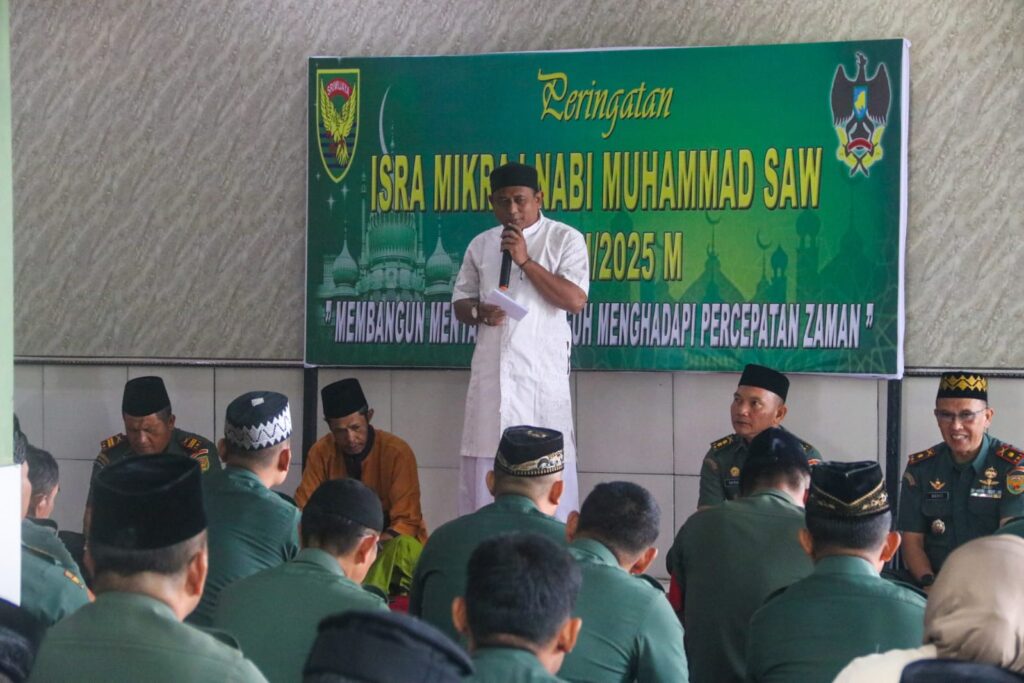 “Isra’ Mi’raj mengajarkan kita pentingnya keteguhan iman dan disiplin dalam menjalankan ibadah. Dalam kehidupan militer, nilai-nilai ini selaras dengan komitmen prajurit dalam melaksanakan tugas dan tanggung jawabnya,” ujar Kasdim.
